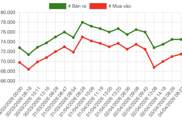 Trong tuần 30/3 – 4/4, giá bán vàng miếng SJC và và vàng nhẫn “4 số 9” tại các hệ thống lớn chỉ tăng phổ biến với 0,4%. Trong khi…
