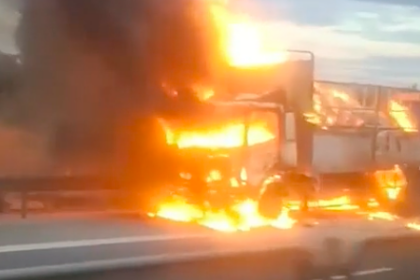 Xe tải chở hàng chạy trên cao tốc Vĩnh Hảo – Phan Thiết bất ngờ…