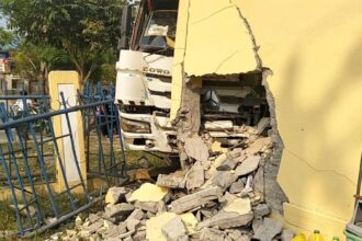 Xe đầu kéo tông sập tường trường mầm non
