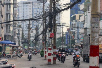 Loạt trụ điện giữa đường mới mở rộng ở nội đô TP HCM