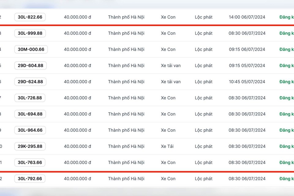 Đấu giá biển số: Theo thông tin mới nhất, Công ty Đấu giá hợp danh Việt Nam (VPA) đã công bố danh sách 64.000 biển số xe ô tô đẹp được dự kiến đấu giá trong ngày 5-6.7.2024. Trong danh sách lần này, xuất hiện hàng loạt các biển số siêu đẹp của khắp các tỉnh thành trên cả nước.